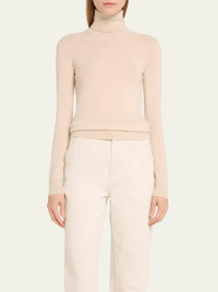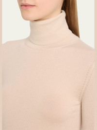 Loro Piana "Dolce Vita" knit turtleneck in cashmere Foldover neckline Long sleeves Ribbed trim Hip length Fitted Pullover style Cashmere Dry clean Made in Italy Model is 5'10"/177cm. Online Inquiries: BGS21_BB4HM| Store Inquiries: #4620679