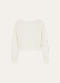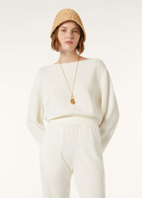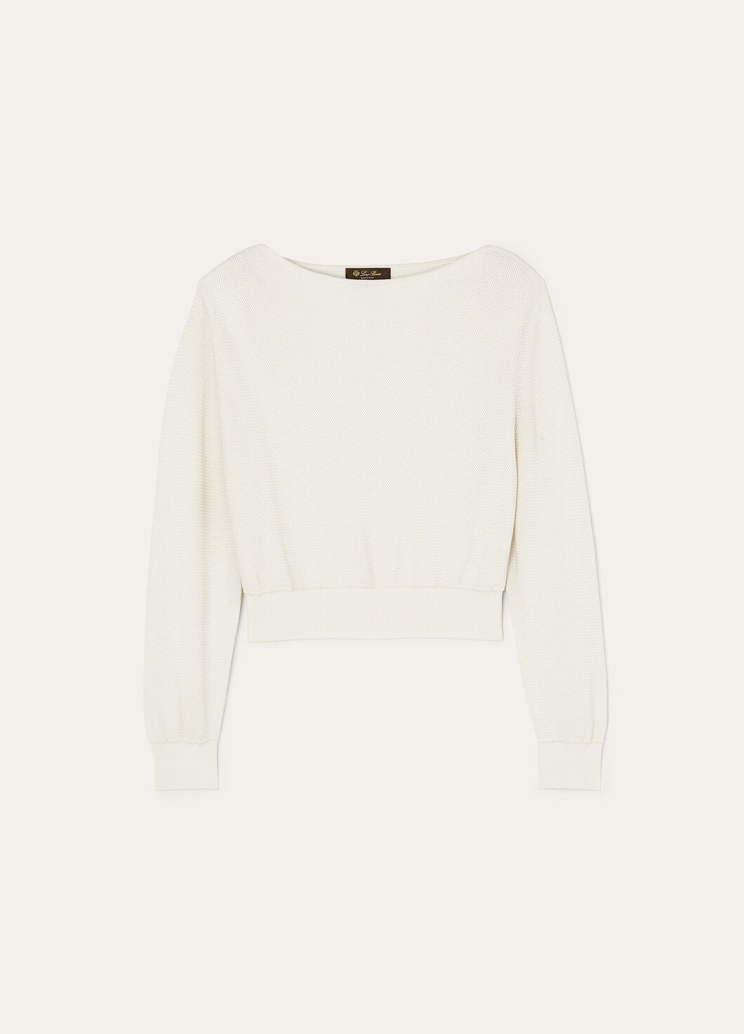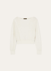With its clean boat neck and minimalist white hue, the Dora Baltea sweater combines versatility with understated elegance. It is spun from Loro Piana’s classic summer blend – a fusion of lustrous silk and breathable cotton – and is worked in a micro-basket weave. Both the hem and cuffs are cinched to create a sophisticated, comfortable shape. Product details Boat neck Ribbed cuffs Regular fit Ribbed hem Basketweave stitch Gauge 12 Composition: 55% Silk, 45% Cotton Model wears an IT S Model measures: height 5′ 10″/ 177cm, bust 30.3″/ 77cm, waist 24.0″/ 61cm, hips 35.4″/ 90cm, shoes 14.6″/ 37cm. Product code: FAO9766