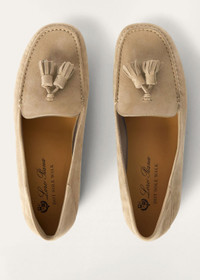 New Loro Piana loafers made from soft made suede with water-repellent finish. Their informal laid-back style is enhanced by rubber soles, LP logo rubber pads and sabot-style collapsible heels. This lightweight, flexible style is enhanced Loro Piana My Charms tassels. Product details Kidskin interior Padding under the insoles for increased comfort Composition: 100% Suede Specific Features: Lining: 100% Calfskin; Soles: 100% Rubber Made in Italy Product code: FAN0109