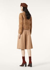 The Drake bermuda shorts whisper tales of spring garden afternoons, where fabric flows like watercolor across the canvas of warming days. The knee-length design in lightweight cashmere wool brings unexpected sophistication. The wide-leg silhouette creates a refined ease for both city exploration and coastal adventures. Product details Mid-rise waist Flared cut Front American pockets; back ticket pockets Zip closure with button and metal hook Horn button Belt loops Regular fit Unlined Composition: 46% Wool, 43% Cashmere, 11% Linen Product code: FAP2973