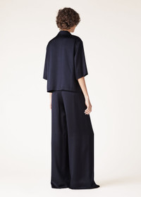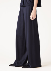 Reminiscent of a gentle stream trickling through a secluded forest clearing, the ethereal hue gently caresses the Dresden pants with the serene beauty of nature's most soothing melodies. This wide-leg pair in sumptuous silk have no pockets and an invisible side zip for a sleek aesthetic. Wear them with structured knits or blouses for a refined, contemporary look. Product details Invisible zip fastening covered button Pockets lined in canvas silk Composition: 100% Silk Model wears an IT 36 Model measures: height 5′ 10″/ 179cm, bust 30.3″/ 77cm, waist 23.2″/ 59cm, hips 34.3″/ 87cm. Product code: FAO3594