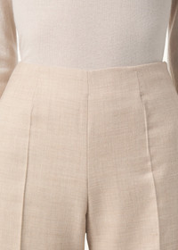Understated yet elegant, the Timi pants are tailored with precise front pleats and ironed creases. They are crafted from Royal Lightness™, one of the Maison’s new 'excellence' fabrics, exuding a featherlight sensorial touch. Finished without a waistband and a discreet side-zip fastening, they cast a clean, modern line. Product details Mid-rise waist Straight cut; front pleat Zipped side fastening Lined in silk Regular fit Composition: 85% Cashmere, 15% Silk Made in Italy Product code: FAQ1787