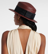 Product Details - Material: 100% straw - Care instructions: do not wash - Made in Italy - Designer color name: Ginger Brown - Item color: burgundy - Details: 55% cotton, 45% viscose - Trim: 100% silk - Item number: P01084479 Size & Fit - Circumference size M 56cm-22" - Width of brim 4,5cm-2"