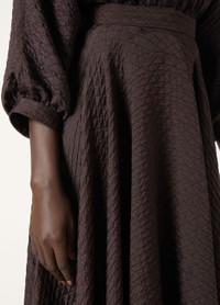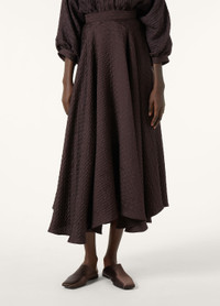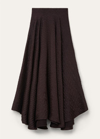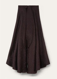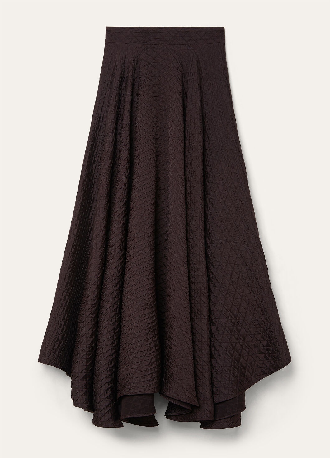With its innate grace, silk captures the delicate essence of spring's awakening, evoking the gentle whisper of blooming flowers. Like ripples on water, this silk circle skirt creates waves of intentional volume beneath its sash waist belt. The fluid movement brings balletic grace to both casual and formal occasions, especially when paired with a simple silk blouse. Product details High-rise waist Flared skirt Mid length Zip on the back with ribbon Diamond quilting all-over Unlined Regular fit Composition: 100% Silk Product code: FAP2982