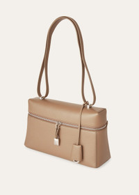 The Extra Bag, an elegant sculptural shape that combines modernity with functionality. Crafted from exquisite leather, it features three-dimensional charms and distinct details. Designed to go from day to evening, in town or travelling, combining exclusive materials, a graceful shape, craftsmanship and functionality. The bag can be carried over the shoulder and crossbody. Product details Shoulder strap in the same material Charms with rounded edges Hardware in Sun Gold color Leather pocket inside featuring the new signature press stud in the shape of the Loro Piana ring, with laser-engraved logo Size: 27 x 16 x 10 cm Composition: 100% Calfskin Lining: 100% Suede Made in Italy Product code: FAO0981