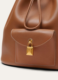 A refined and sophisticated addition to the Extra range, the Extra Backpack effortlessly blends iconic detailing with versatile functionality. Crafted from exquisite materials, this backpack features a sleek design that allows it to be worn comfortably on the back or stylishly slung over the shoulder. With its elegant aesthetic and practical versatility, it is the perfect companion for everyday life. Crafted from smooth calfskin leather. Product details Adjustable shoulder straps with metal tips that can be connected to a leather loop to adjust the fit Removable internal zip pouch with heat embossed logo Drawstring fastening with metal eyelets Leather trim with contrast stitching Leather front pocket with magnetic closure and iconic Loro Piana logo padlock Hardware in Sun Gold finishing Leather base Dimensions: 25 x 27 x 14 cm/9.8 x 10.6 x 5.5 in Composition: 100% Calfskin Lining: 100% Suede Made in Italy Product code: FAP4322