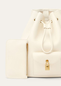 A refined and sophisticated addition to the Extra range, the Extra Drawstring backpack effortlessly blends iconic detailing with versatile functionality. Crafted from exquisite materials, this backpack features a sleek design that allows it to be worn comfortably on the back or stylishly slung over the shoulder. With its elegant aesthetic and practical versatility, it is the perfect companion for everyday life. Crafted from supple calfskin. Product details Adjustable shoulder straps with metal tips that can be connected to a leather loop to adjust the fit Removable internal zip pouch with heat embossed logo Drawstring fastening with metal eyelets Leather trim with tonal stitching Leather front pocket with magnetic closure and iconic Loro Piana logo padlock Hardware in Sun Gold finishing Leather base Dimensions: 25 x 27 x 14 cm/9.8 x 10.6 x 5.5 in Composition: 100% Calfskin Lining: 100% Suede Made in Italy Product code: FAP1404