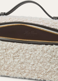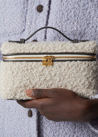 Versatile and endlessly refined, the Extra Pocket L19 is a quintessential Loro Piana pouch with timeless charm. It is crafted from richly textured boucle fused with alpaca, wool, linen, silk and cashmere. The petite accessory can be carried crossbody or in hand, with the strap removed. Product details Handle and crossbody strap Two-way zip fastening with charms Sun Gold hardware Nappa leather lining Dimensions: 19 cm x 11.5 cm x 7 cm / 7.5" x 4.5" x 2.8" Strap drop: 50 cm / 19.7" Weight: 350 g Composition: 57% Alpaca, 29% Wool, 6% Microfiber, 3% Linen, 3% Silk, 2% Cashmere Made in Italy Product code: FAQ2465