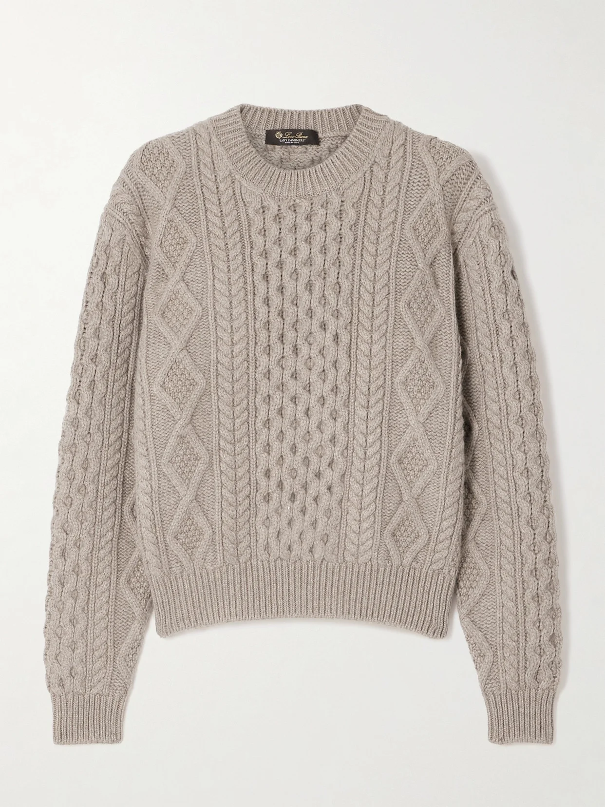 Loro Piana's 'Eyre' sweater is made from cashmere that's prized for its exceptional softness. It has a variety of cable and open-knit stitches that give it a chunky, springy handle. The 'Praline' shade is so versatile.