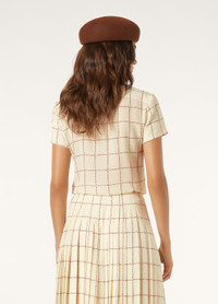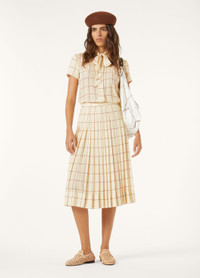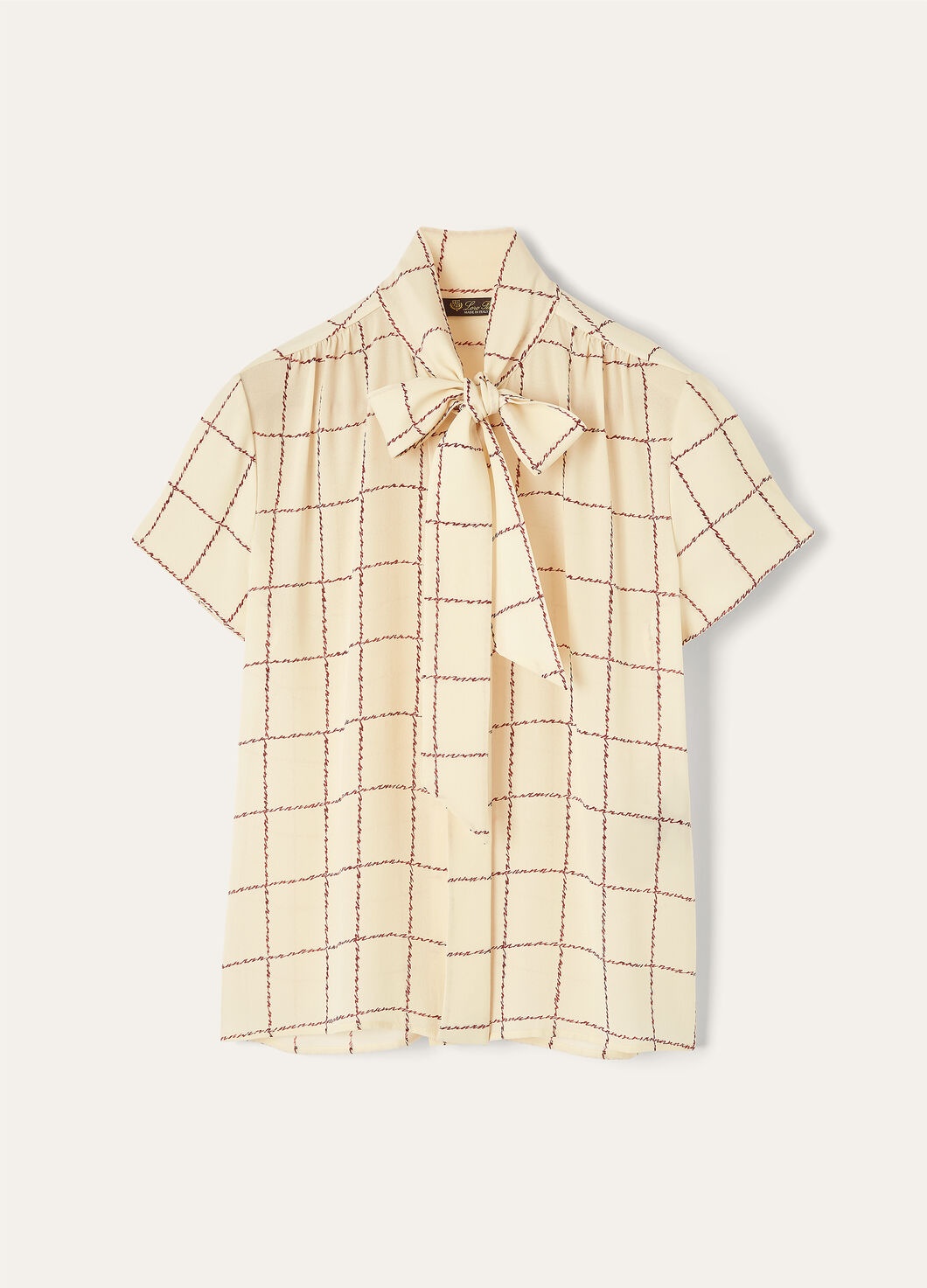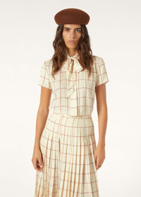 Lending an air of classic charm, the Febe shirt is rounded off with a self-tie bow at the neck for a pulled-together look and feel. Its sable fabric – made using strands of lustrous silk – has a soft, enveloping hand and is embellished with a calligraphy-inspired stripe print inspired by Andre Piot. Product details Self-tie neck Concealed fastening with mother-of-pearl buttons Regular fit Checked pattern Composition: 100% Silk Model wears an IT 40 Model measures: height 5′ 10″/ 177cm, bust 31.9″/ 81cm, waist 23.6″/ 60cm, hips 35.4″/ 90cm, shoes 15.0″/ 38cm. Product code: FAP2869