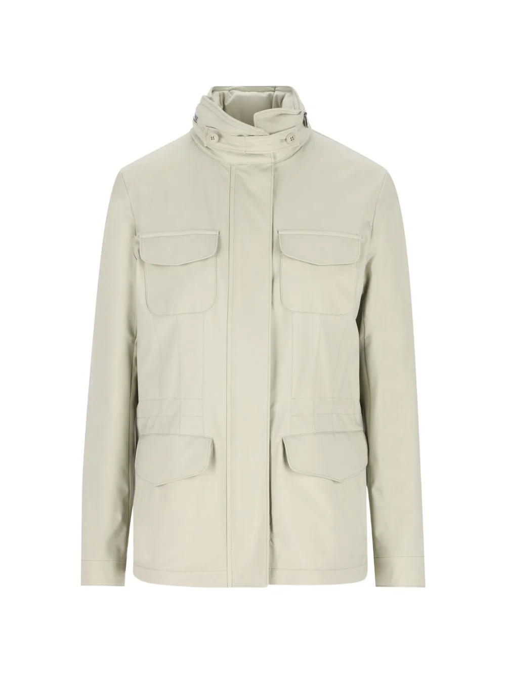 flap-pocket jacket Highlights - Green - Stand-up collar - Removable hood - Chest flap pockets - Adjustable cuffs - Two-way zip closure Made in Italy Composition Lining: Cashmere 100% Outer: Microfibre 100% Washing instructions Read Manufacturer Guidelines