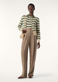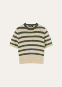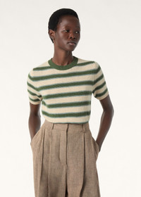 Woven with a subtle striped pattern, the short-sleeved Fobello crewneck is both timeless and modern. A refined fusion of softness, lightness and warmth, it is crafted from rare baby cashmere, garnered from the downy duvet of young Hircus goats which can only be combed once in their lifetime. Ribbed hems and cuffs frame the design with a neat finish. Product details Ribbed round collar Ribbed cuffs Long sleeves Metal button fastening Horizontal two-tone stripes High ribbed hem Regular fit Plain stitch Gauge 7 Composition: 100% Baby Cashmere Made in Italy Product code: FAP5926