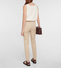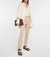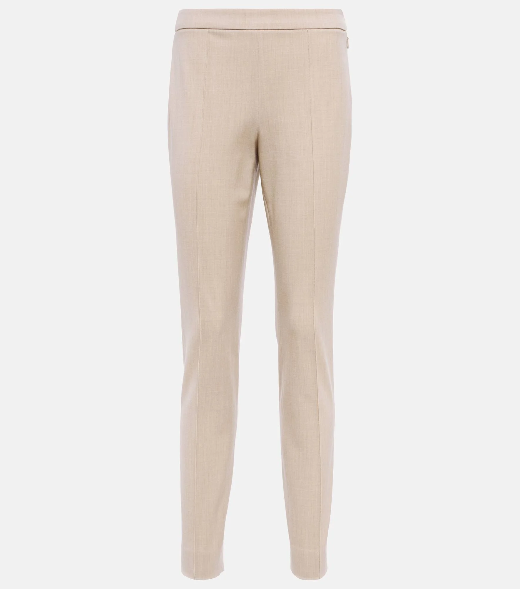 The mid-rise Mirel pants from Loro Piana are a go-with-everything investment. They're made from stretchy wool-blend twill with press-pleated slim legs and notched cuffs. Product Details - Made in Italy - Closure: zipper fly, button fastening - Material: 92% wool, 2% elastane, 6% polyamide - Designer color name: Natural MéLange - Care instructions: dry clean - Item number: P00703880 Size & Fit - True to size - Mid-weight material - Slim-leg - Inseam length approx: 73cm-28.5" - The model seen in the picture is 178cm-5'10" and wearing a size IT 40