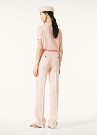 Refined and versatile, the Goldie pants are inspired by classic menswear tailoring and cut with a straight leg that forgoes pleat detailing, save for a neat pressed crease, in favor of a streamlined silhouette. Its linen and wool fabrication has an elegantly structured drape and reproduces a historical material with a Batavia weave that is soft to the touch. Product details Mid-rise waist Straight cut Straight side pockets and ticket pockets with horn buttons on the back Zip fastening with metal hook and button Horn buttons Belt loops Regular fit Unlined Composition: 70% Linen, 30% Wool Model wears an IT 40 Model measures: height 5′ 10″/ 179cm, bust 30.3″/ 77cm, waist 23.2″/ 59cm, hips 35.0″/ 89cm, shoes 15.4″/ 39cm. Product code: FAM9093