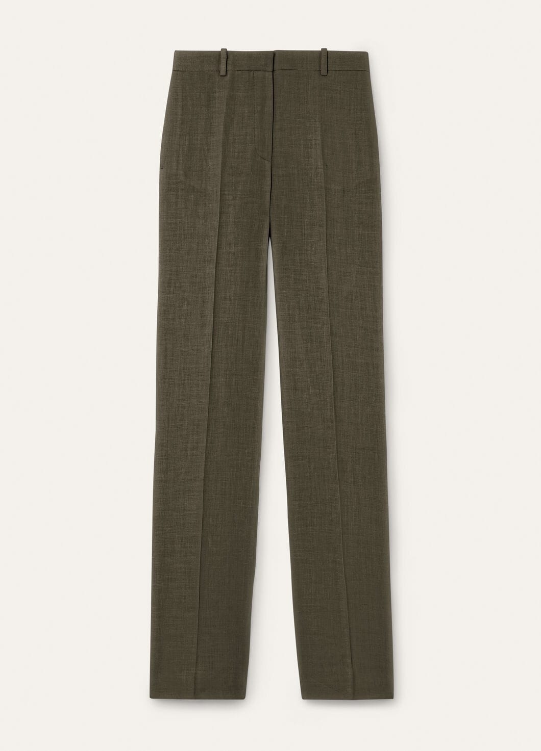 Refined and versatile, the Goldie pants are inspired by classic menswear tailoring and cut with a straight leg that forgoes pleat detailing, save for a neat pressed crease, in favor of a streamlined silhouette. Its linen and wool fabrication has an elegantly structured drape and reproduces a historical material with a Batavia weave that is soft to the touch. Product details Mid-rise waist Straight cut Straight side pockets and ticket pockets with horn buttons on the back Zip fastening with metal hook and button Horn buttons Belt loops Regular fit Unlined Composition: 70% Linen, 30% Wool Model wears an IT 40 Model measures: height 5′ 10″/ 179cm, bust 30.3″/ 77cm, waist 23.2″/ 59cm, hips 35.0″/ 89cm, shoes 15.4″/ 39cm. Product code: FAM9093