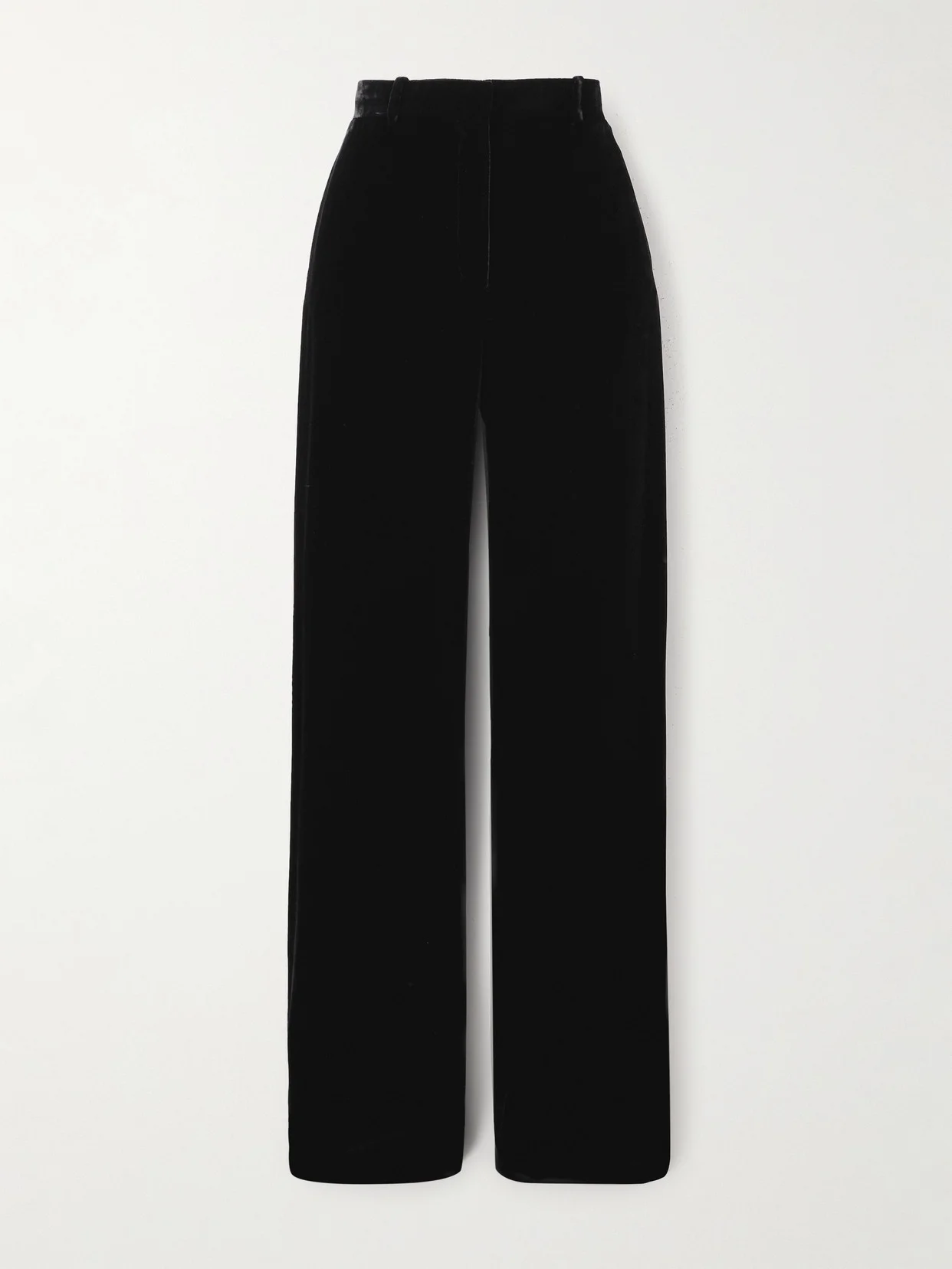 Loro Piana's 'Goldie' pants are made from plush velvet blended with touches of silk for added luster. They sit high on the waist and have a fluid wide-leg shape with pressed creases. Thread a tonal belt through the loops.