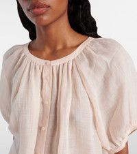 Every Loro Piana design combines the best of Italian craftsmanship with the finest raw materials. Made from ramie canvas, the Gritt blouse is complete with puff sleeves and gathered details. Product Details - Material: 100% ramie - Care instructions: machine wash at 30 degrees - Made in Italy - Designer color name: Sunrise Clouds - Item color: pink - Closure: buttoned front - Cuff: buttoned - Item number: P01060892 Size & Fit - True to size - Designed for a loose fit - Falls to the hip - The model seen in the picture is 178cm-5'10" and wearing a size IT 40