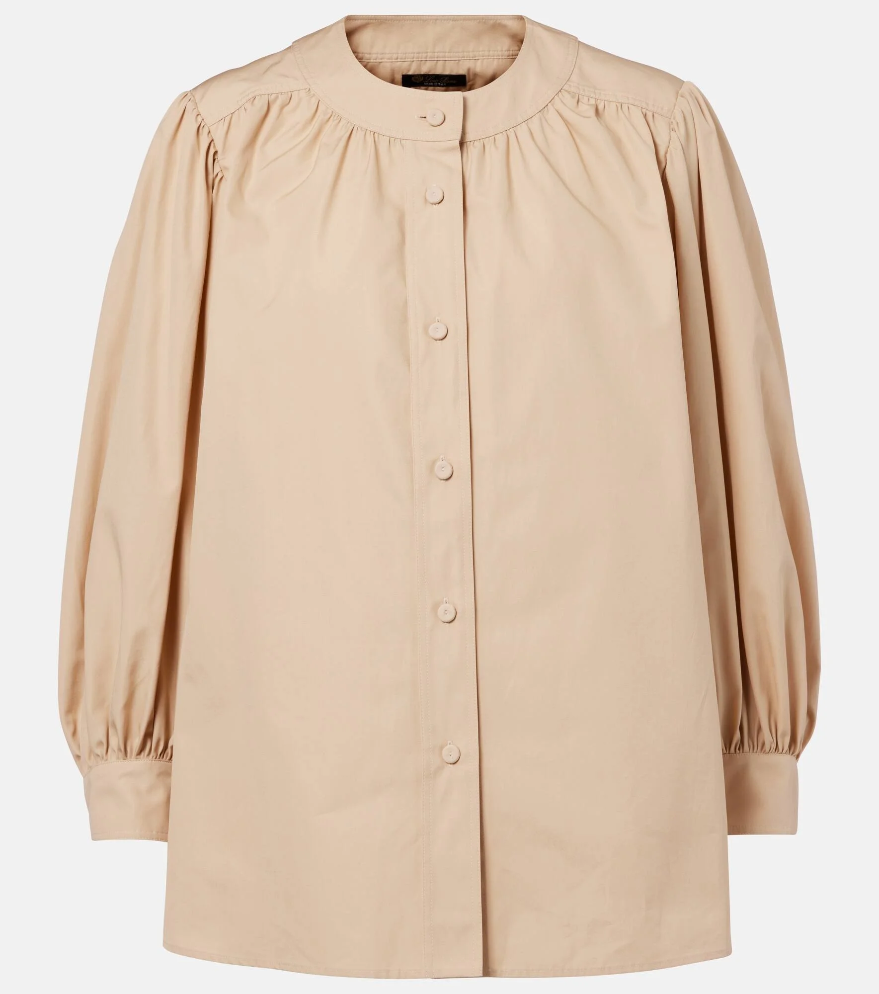 Every Loro Piana design combines the best of Italian craftsmanship with the finest raw materials. The Hailey blouse is made purely from beige cotton and features gathered sleeves and tonal button closures. Product Details - Material: 100% cotton - Care instructions: machine wash at 30 degrees - Made in Italy - Designer color name: Ivory Frost - Item color: ivory - Closure: buttoned front - Cuff: buttoned - Relaxed fit - Item number: P01060876 Size & Fit - True to size - Designed for a loose fit - Non-stretchy fabric - Falls below the hip - The model seen in the picture is 178cm-5'10" and wearing a size IT 40