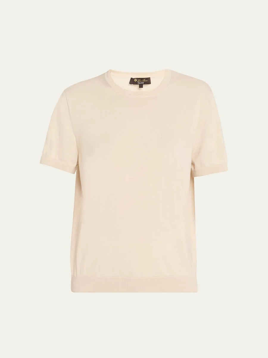 Loro Piana "Ice Wish" sweater in a fine cotton knit Crew neckline Short sleeves Loose fit Ribbed cuffs and hem Pullover style Cotton Dry clean Made in Italy Online Inquiries: BGS21_BAARQ| Store Inquiries: #5068875