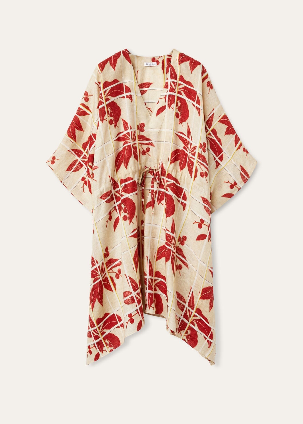 The graceful suppleness of linen captures the vibrant yet delicately ephemeral beauty of Japanese hibiscus print, the petals woven like brushstrokes. With a deep V-neckline and breezy kimono sleeves, this short kaftan is loose yet shapely thanks to a cinching drawstring waist. Linen's renowned breathability lets you fully relax and enjoy your surroundings in the heat of the day. Product details V-neck design Composition: 100% Linen Model wears an IT L Model measures: height 5' 10.9"/ 180cm, bust 32.3"/ 82cm, waist 23.6"/ 60cm, hips 35.4"/ 90cm. Made in Italy Product Code: FAN8173