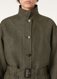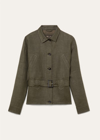 Defined by its streamlined silhouette and refined belt accent, the Jaylon field jacket is a sophisticated outerwear companion for the in-between season. The relaxed design is rendered from a structured linen and wool blend and gestures towards a historic cloth with its Batavia weave and soft, almost opaque finish. Its even color is expertly achieved through piece-dyeing. Product details Shirt collar Upper side pockets Shirt cuffs with horn button Front fastening with horn buttons Silk lining Regular fit Self-fabric belt with adjustable buckle Composition: 70% Linen, 30% Virgin Wool Model wears an IT 40 Model measures: height 5′ 10″/ 179cm, bust 30.3″/ 77cm, waist 23.2″/ 59cm, hips 34.3″/ 87cm, shoes 15.4″/ 39cm. Product code: FAP0556