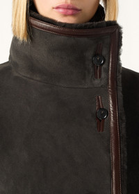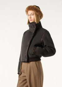 Tailored from supple suede with a sumptuous shearling interior, the Jekel blouson pairs enveloping warmth with a short, structured silhouette. Each panel is seamlessly matched to the hide's scale, ensuring an immaculate fall across the shoulders and sleeves. A ribbed cashmere hem adds a final note of tactility to this cold-weather essential. Product details Standing collar Two straight side pockets Asymmetric button fastening; horn buttons Leather trims Ribbed cashmere hem Lined in shearling Regular fit Composition: 100% Sheepskin Made in Italy Product code: FAP7341