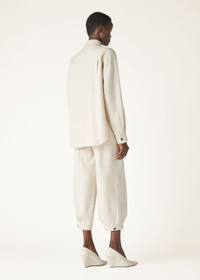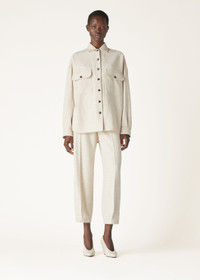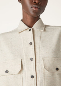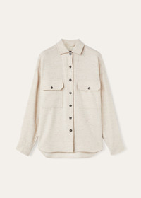 Honoring the timeless heritage of craftsmanship while embracing contemporary design nuances, the Jenna overshirt emerges as an iconic masterwork. Wrapped in sumptuous warmth, this oversized wool piece channels sophisticated versatility with its iconic convertible collar and spacious chest pockets. The perfect layering piece for transitional seasons. Product details Fastens with Sergio buttons, a reworked design in refined horn in different shapes The new buttons are slightly thicker with a more rounded base to make them easier to fasten Patch pockets on chest with flap and button Composition: 84% Virgin Wool, 8% Linen, 6% Cotton, 2% Viscose Lining: 100% Silk Model wears an IT 36 Model measures: height 5′ 11″/ 180cm, bust 31.5″/ 80cm, waist 23.6″/ 60cm, hips 35.4″/ 90cm. Product code: FAO4356