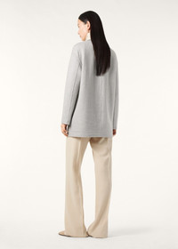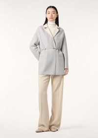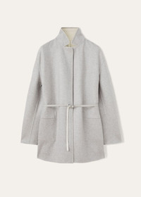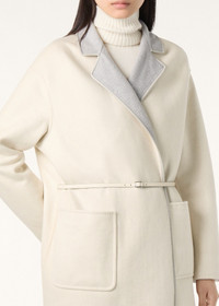 Reversible jacket crafted from super-soft two-tone double baby cashmere jersey. The plonge leather belt fastens the jacket and adapts the line of the waist as desired. It can also be worn open to create distinctive layered looks, showing the different coloured sides. Product details Double baby cashmere jersey is a double layer knitted fabric that can be opened completely. Soft and very warm, it is gently fulled to give it a compact texture that recalls a traditional woven fabric Rare, supersoft baby cashmere is obtained solely from the underfleece of Hircus goat kids Plonge leather belt and trim Drop shoulders Composition: 96% cashmere 4% polyamide Trim: belt 100% lambskin, other trim 100% lambskin Model wears an IT S Model measures: height 5′ 11″/ 180cm, bust 32.7″/ 83cm, waist 24.0″/ 61cm, hips 35.0″/ 89cm. Made in Italy Product code: FAF8083