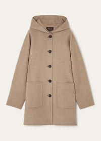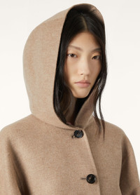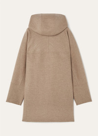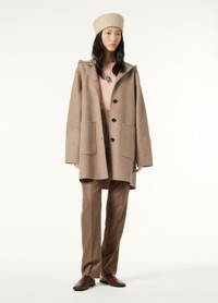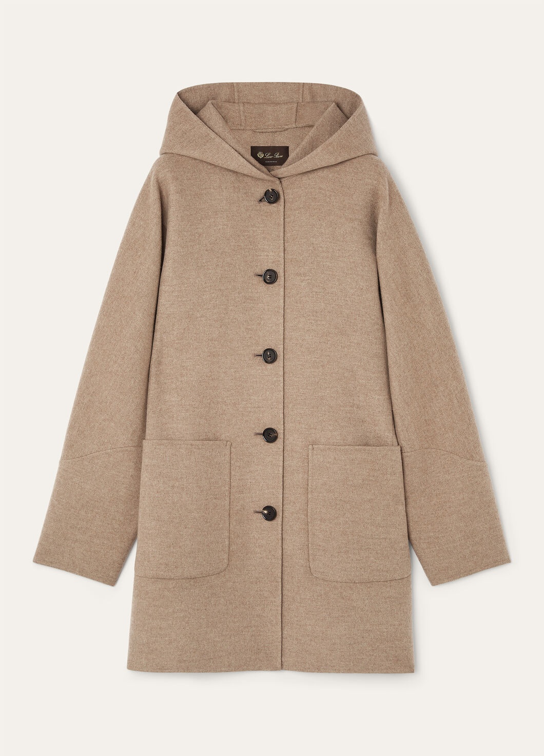 A hooded silhouette crafted from a signature Loro Piana fiber, the Kian coat fuses practicality with refinement. Sown on the inside, its cashmere fabric is worked using a double construction technique for a seamless finish, fluid drape, and a sumptuous, almost weightless, feel. Finished with a single-breasted front and oversized patch pocket, the outerwear garment is a nod to traditional raincoats. Product details Hooded design Two patch pockets Front fastening with horn buttons Single-breasted design Unlined Regular fit Composition: 100% Cashmere Product code: FAP0406