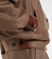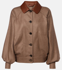 Every Loro Piana design combines the best of Italian craftsmanship with the finest raw materials. The Kiefer bomber jacket is made from cashmere and silk with wide raglan sleeve and leather trims. Product Details - Material: 93% cashmere, 7% silk - Care instructions: dry clean - Made in Italy - Color: brown - Designer color name: Frisone Horse - Lining: 100% silk - Partially lined - Details: 100% lamb leather - Contains non-textile parts of animal origin - Closure: buttoned front - Adjustable tabs at the waist - Cuff: tab cuff - Pockets: side welt pockets - Item number: P01130391 Size & Fit - True to size - Designed for a loose fit - Non-stretchy fabric - Falls to the hip - The model seen in the picture is 178cm-5'10" and wearing a size IT 40