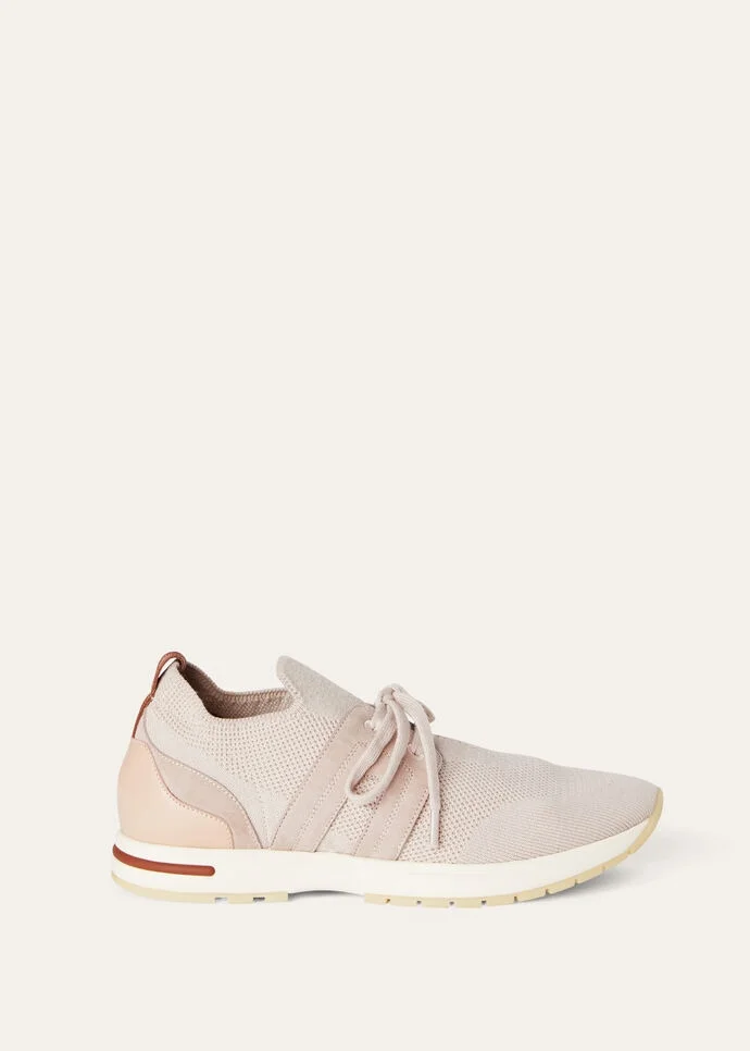Sneaker in knitted Wish® wool crafted using an exclusive, very complex technique. Feather-light and super-comfortable, ideal for leisure time and lounging, and perfect with casual looks in the city. Product details Wish® is an exceptionally fine wool from selected Merino sheep bred in Australia and New Zealand The upper is machine-knitted just like a sweater, then joined to the ultra-light technical sole The sides of the shoe are finished with water-repellent suede Kummel-coloured loop on the heel with the Loro Piana logo White sole in ultra-light rubber with kummel-coloured inserts and tread featuring the Loro Piana initials Composition: 95% virgin wool 5% polyester Trim: 100% suede goatskin Made in Italy Product Code: FAI7759