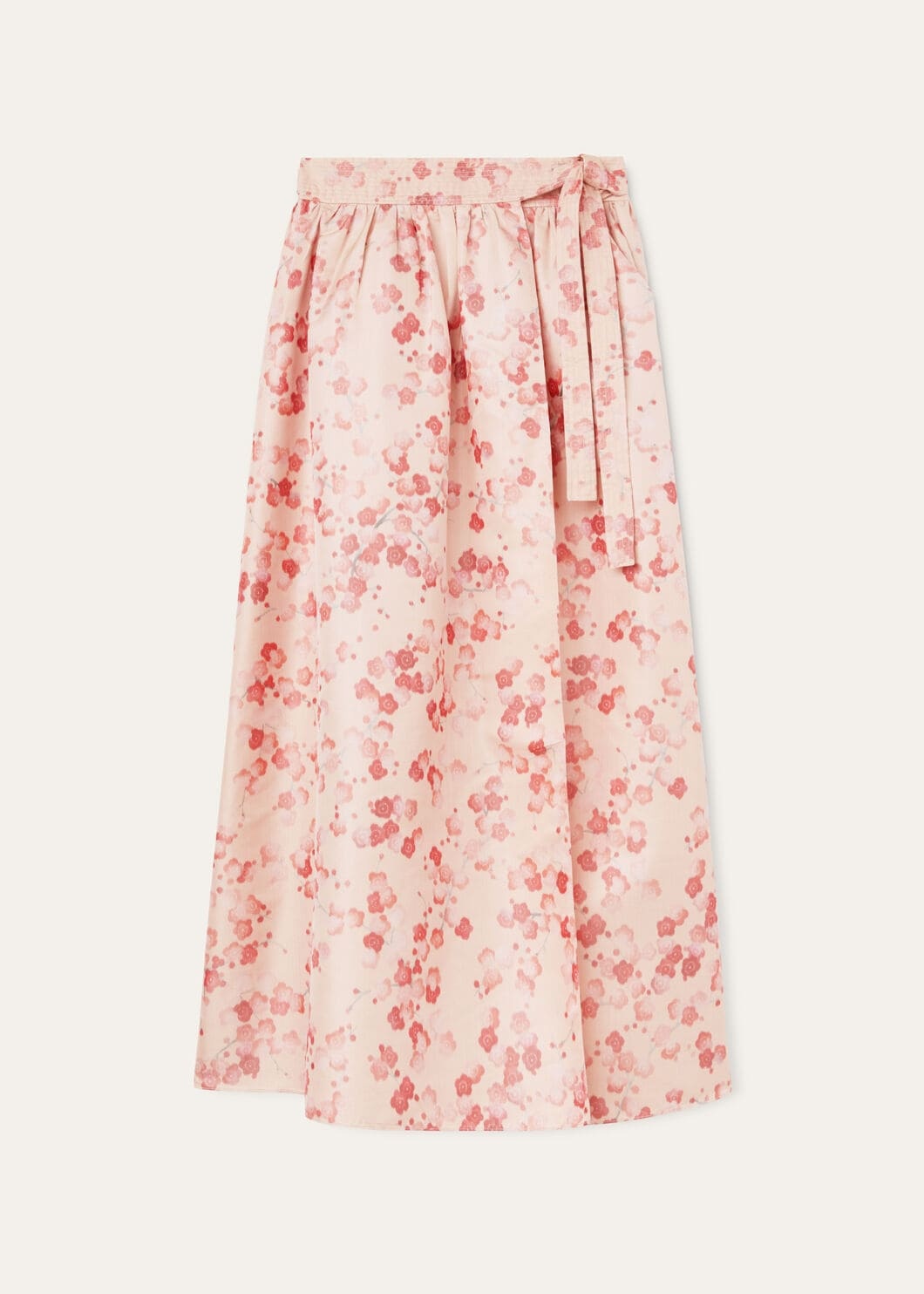 Where nature moves in subtle ways, the Leah skirt awakens in soft-toned blossoms to match its quiet renewal. Sumptuous silk ripples with Japanese floral splendor down this wrap-over skirt. Twin lacing gently cinches the waist before flowing into an elegant, flared silhouette, each flowering bud a testament to the beauty of nature. Product details Composition: 100% Silk Model wears an IT 36 Model measures: height 5' 8.9"/ 175cm, bust 31.1"/ 79cm, waist 23.2"/ 59cm, hips 33.9"/ 86cm. Made in Italy Product Code: FAO0384