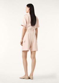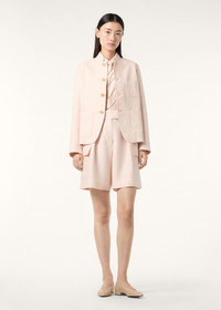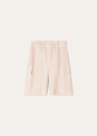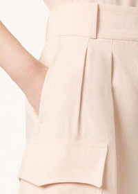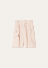Woven from Antigua linen, the Kal Bermuda shorts offer a utilitarian reinterpretation of warm-weather tailoring—their crepe fabric drapes fluidly and naturally resists creasing. The design features large cargo patch pockets at the sides and is shaped with front pleats that introduce subtle volume to its above-the-knee silhouette. Considered finishings include a topstitched waistband with an extended tab closure and silk-lined side pockets for refined functionality. Product details High-rise waist Wide leg Belt loops Patch side pockets Zip and hook fastening with button Horn button Pleats on front Unlined Regular fit Composition: 100% Linen Made in Italy Product code: FAP7961