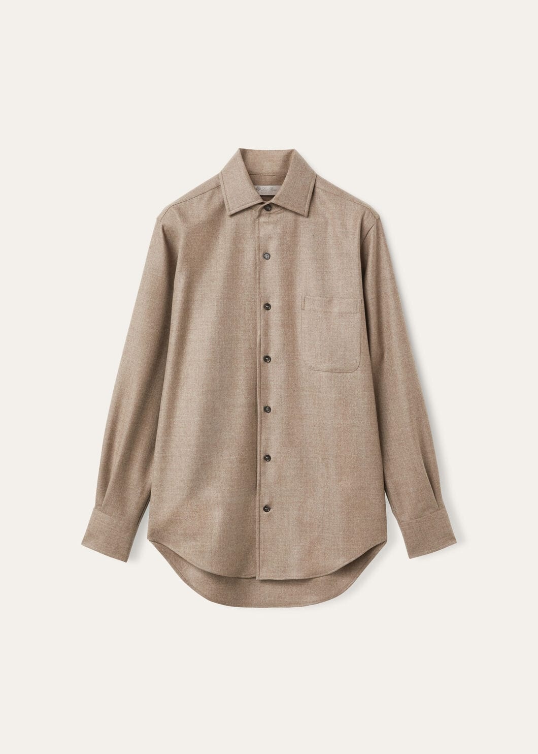 Pecora Nera® fabric – a hidden gem unearthed from the untamed beauty of New Zealand's dark merino sheep – is a testament to Loro Piana’s unwavering pursuit of textile excellence. Inspired by its iconic namesake, the Andre shirt embodies the same timeless elegance and styling details as the original, but it's crafted from this special wool fabric. The result is an immaculate and sophisticated garment. Product details Collar with facings Small chest pocket Four-hole buttons in mother-of-pearl Gusset with the Loro Piana logo Pleats on back Composition: 100% Virgin Wool Model wears an IT 36 Model measures: height 5′ 10″/ 179cm, bust 30.3″/ 77cm, waist 23.2″/ 59cm, hips 34.3″/ 87cm. Product code: FAO6802