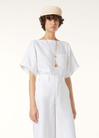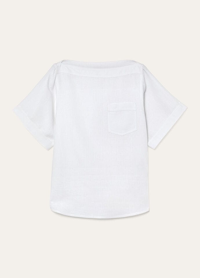 An elevated take on a wardrobe classic, the Assen top is shaped with an elegant bateau neckline that neatly sweeps across the shoulders. The Antigua Linen fabric is a light crepe woven with a drill weave with the fibers twisted – thus ensuring a fluid, crease-resistant finish. Product details Boat neck Patch pocket at the chest Edge stitching at cuffs Oversize fit Composition: 100% Linen Model wears an IT 40 Model measures: height 5′ 10″/ 179cm, bust 30.3″/ 77cm, waist 23.2″/ 59cm, hips 34.3″/ 87cm, shoes 15.4″/ 39cm. Made in Italy Product code: FAP0323