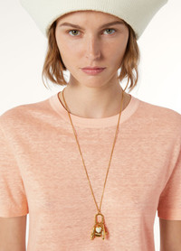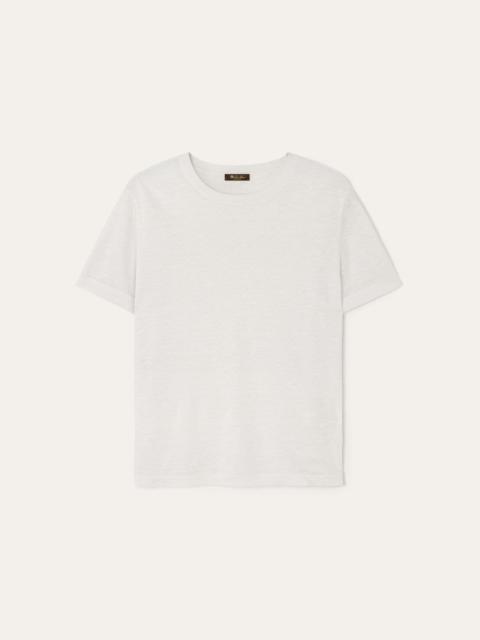Crafted in lightweight linen jersey, the Gargano T-shirt is a versatile layer for summer. It has the slubbed finish so typical of linen and is treated with aloe vera for softness and fluid drape. The crewneck is traced with a ribbed trim on a thoughtful finishing note. Product details Crewneck with ribbed trim Heat-sealed Loro Piana logo Relaxed fit Composition: 100% Linen Model wears an IT 40 Model measures: height 5′ 10″/ 177cm, bust 30.3″/ 77cm, waist 24.0″/ 61cm, hips 35.4″/ 90cm, shoes 14.6″/ 37cm. Made in Italy Product code: FAM8107
