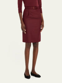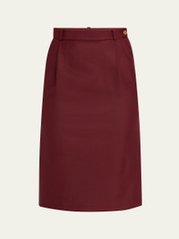 Loro Piana "Lizzy" skirt crafted from light shantung featuring an elegant pleated front Sits high on the waist Hem falls to the knee Skirt falls straight from hip to hem Button/zip fly; belt loops Silk Dry clean Made in Italy Proposition 65 warning for California residents Online Inquiries: BGS21_B9SKX| Store Inquiries: #4956696