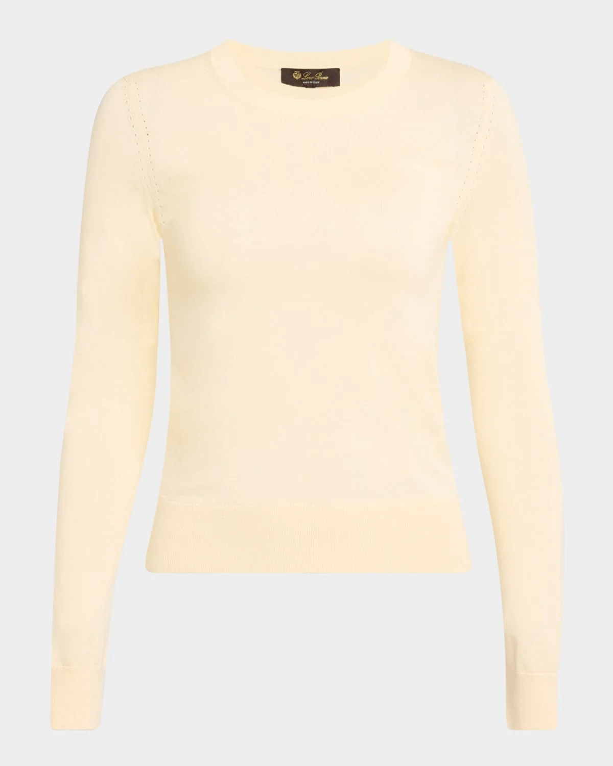 - Loro Piana knit sweater with ribbed trim - Round neckline - Long sleeves - Relaxed fit - Pullover style - Cashmere - Made in Italy