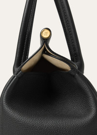 The Loom bag pays homage to Loro Piana's centuries-old textile heritage, with the metal bar beneath the flap evoking the gentle cascade of fabric draped across an artisan's loom - a subtle nod to the brand's storied weaving techniques. Uniquely textured yet lightweight in exclusive fine-grain calfskin, the refined padlock that closes the bag can be unfastened, giving it a more relaxed look. Loom can be worn closed or open without losing charm and personality. Even when worn unfolded, the bag gracefully closes by itself. Product details Leather handles Detachable adjustable crossbody strap Adorned with signature, interchangeable Loro Piana charms Hardware in Sun Gold finishing Leather open pocket inside with stamped logo Removable inner pouches Ring-shaped protective feet on the base Tonal logo stamped on the front of the bag Dimensions: 25 x 18 x 12.5 cm / 9.8 x 7 x 4.9 in Handle drop: 6.5 cm / 2.6 in Composition: 100% Calfskin Lining: 100% Suede Made in Italy Product code: FAO2680