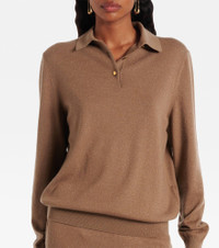 Product Details - Material: 90% cashmere, 5% nylon, 5% polyester - Care instructions: hand wash - Made in Italy - Designer color name: Cup Of Coffee - Item color: beige - Details: 69% cashmere, 21% nylon, 6% elastane, 4% polyester - Closure: buttoned placket - Collar: polo collar - Cuff: ribbed - Hem: ribbed - Item number: P01081858 Size & Fit - True to size - Designed for a loose fit - Elasticated waist - Falls below the hip - Height of model is 174cm-68.5" and wears a size IT 40