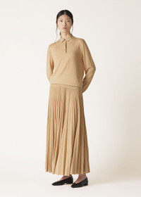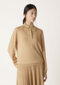 With every movement, the shimmering knit of the Luciole polo shirt comes alive, its soft sheen echoing the play of candlelight on champagne. In this classic polo design, ultra-soft cashmere is interwoven with a whisper of Lurex. The gold-tone metal logo buttons add an extra touch of sophistication, making it an ideal choice for special occasions where understated glamour is desired. Product details Ribbed cuffs and bottom hem Regular shoulder Closes with three gold-tone metal coin-style buttons engraved with Crest motif Composition: 90% Cashmere, 10% Technical Fabric Model wears an IT 36 Model measures: height 5′ 10″/ 179cm, bust 31.1″/ 79cm, waist 24.8″/ 63cm, hips 35.0″/ 89cm. Made in Italy Product code: FAO5190
