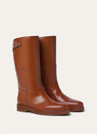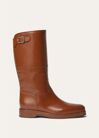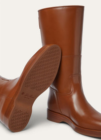The Lupo boots are meticulously crafted from fine calfskin that has been treated with a natural wax finish for a lustrous sheen and crisp, subtly irregular texture. The low bootleg is finished with an adjustable buckle strap, reminiscent of an elegant belt, while the round toe and stitched panels showcase fine craftsmanship. A timeless silhouette. Product details Tan calfskin lining Leather sole to match the upper Tonal branded rubber tread Antique-silver finishing LP buckle Heel height: 2 cm (0.8 in) Composition: Upper: 100% Calfskin Lining: 100% Calfskin Sole: 100% Rubber Specific Features: 100% Leather Product code: FAO7351