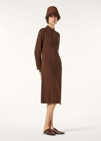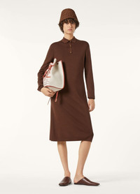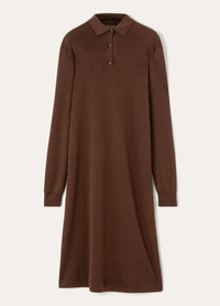 Elegant and sensuous, the flared Lyskamm dress has a smooth and lustrous finish. It is rendered in Kibiso Silk, a rare filament that is produced by a mere 2.5% of cocoons spun by silkworms. The most intricate part is the dyeing of this delicate fabric, done reactively, for a minimum of eight hours to ensure supreme coloration. A combination of drop stitch detailing and golden metal buttons add an elevated finish. Product details Polo collar Fluid sheath dress Mid length Long sleeves Ribbed cuffs Front fastening with enameled metal buttons Slim fit Unlined Gauge 18 Composition: 100% Silk Model wears an IT 40 Model measures: height 5′ 10″/ 179cm, bust 30.3″/ 77cm, waist 23.2″/ 59cm, hips 34.3″/ 87cm, shoes 15.4″/ 39cm. Made in Italy Product code: FAP6276