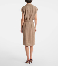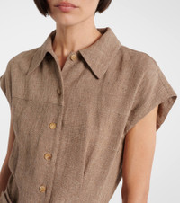 The Maise shirt dress by Loro Piana exudes timeless sophistication with its buttoned front and a cinching belt at the waist. Crafted from linen crepe, this piece is cut to a midi, relaxed silhouette and features a classic collar. Product Details - Material: 100% linen - Care instructions: dry clean - Made in Italy - Designer color name: Dark Truffle/Brown - Item color: brown - Detachable belt - Contains non-textile parts of animal origin - Closure: buttoned front - Collar: classic (Straight point) - Belt loops - Pockets: side slit pockets - Item number: P01069288 Size & Fit - True to size - Loose fit, comes with belt - Non-stretchy fabric - The model seen in the picture is 178cm-5'10" and wearing a size IT 40