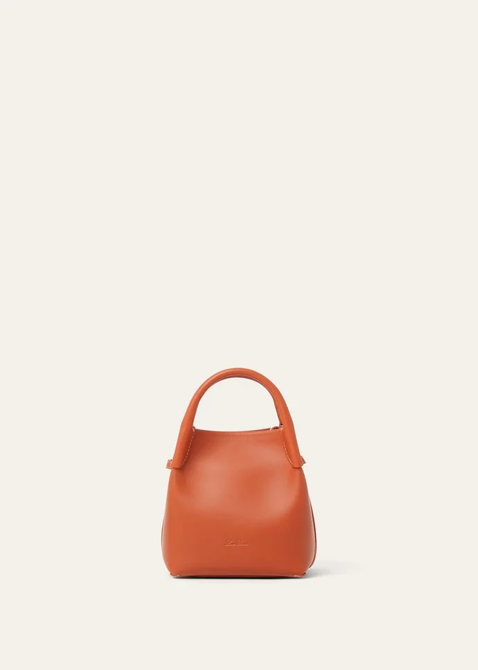 Loro Piana’s distinctive heritage is embodied in the Bale Bag — a new icon of laidback, timeless elegance. Its name and cube-shaped silhouette is inspired by cashmere storage bales, strongly evoking Loro Piana’s artisanal expertise. This handcrafted style is made from luxury calfskin that is exceptionally soft, thanks to meticulously selected materials and exclusive techniques used for tanning, dying and finishing, evoking the glove-making tradition. The micro version of the Bale Bag combines elegance and tradition in a minimalist, modern design. Product details Size: Micro 13 x 13 x 16 cm (5.2" x 5.2" x 6.3") Handle Length: 8 cm Strap Length: 57 cm. A detachable, cotton-and-leather shoulder strap wraps around the entire bag like a ring. The shoulder strap features two holes, so its length can be adjusted, allowing the bag to be carried by hand, over the shoulder or as a crossbody style. Bejeweled metal inside closure with Antique Silver finish. Lightly padded and lined in soft suede Contrasting-colored, embossed Loro Piana logo on the front Outside base lined in leather Composition: 100% Calfskin Specific Features: Lining: 100% Suede Made in Italy Product code: FAN0807