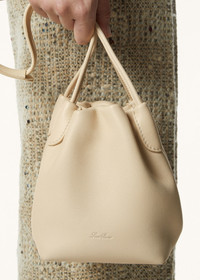 Inspired by Loro Piana’s cashmere bales – bundles of precious raw fiber – the Bale Softy Bag is a sophisticated bucket style steeped in the Maison’s rich textile legacy. With its sensorial touch, unique lightness and seamless finish, this micro edition is primed for everyday elegance and can be carried in the hand or over the shoulder. It is crafted from ultra-smooth nappa leather with hand-stitched handles and a signature toggle fastening. Product details Connected handles that convert into a shoulder strap Internal metal toggle fastening Embossed Loro Piana logo on the front Double-layer base Hardware details Dimensions: 12.5 x 17 x 15 cm / 5" x 6.6" x 5.9" Lined in leather Weight: 185 g / 0.6 lb Composition: 100% Lambskin Made in Italy Product code: FAQ2160