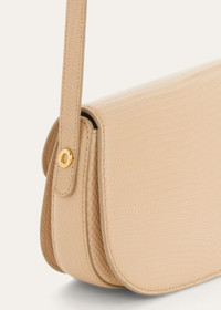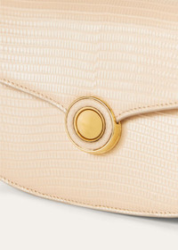 This mini version of the Ghiera bag is a sophisticated accessory inspired by the brand's iconic ring clasp, now reinterpreted as a stylized round clasp. Crafted in exclusive lizard leather, this bag has a slightly square shape with curved edges, creating a well-structured yet supple silhouette. The lustrous exceptionally soft feel of the leather, combined with the adjustable shoulder strap, allows for versatile styling options, whether worn across the body or over the shoulder. Product details Metal ring clasp with logo in Sun Gold colorway with Dalmatian Tejus trim Strap attachment with two rounded-edge rings Expanding gussets, which create a spacious internal compartment Three internal pockets: card holder, zipped pocket and gusset pocket with Ghiera button fastening The internal flap pockets feature the new signature press stud in the shape of the Loro Piana ring, with engraved logo Lined in nappa leather Dimensions: 18 x 13 x 7 cm Strap length: min 36 cm - max 48 cm Composition: 100% Lizard Skin Lining: 100% Lambskin Made in Italy Product code: FAO6440