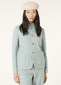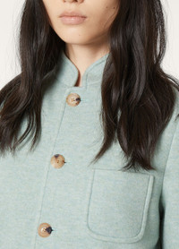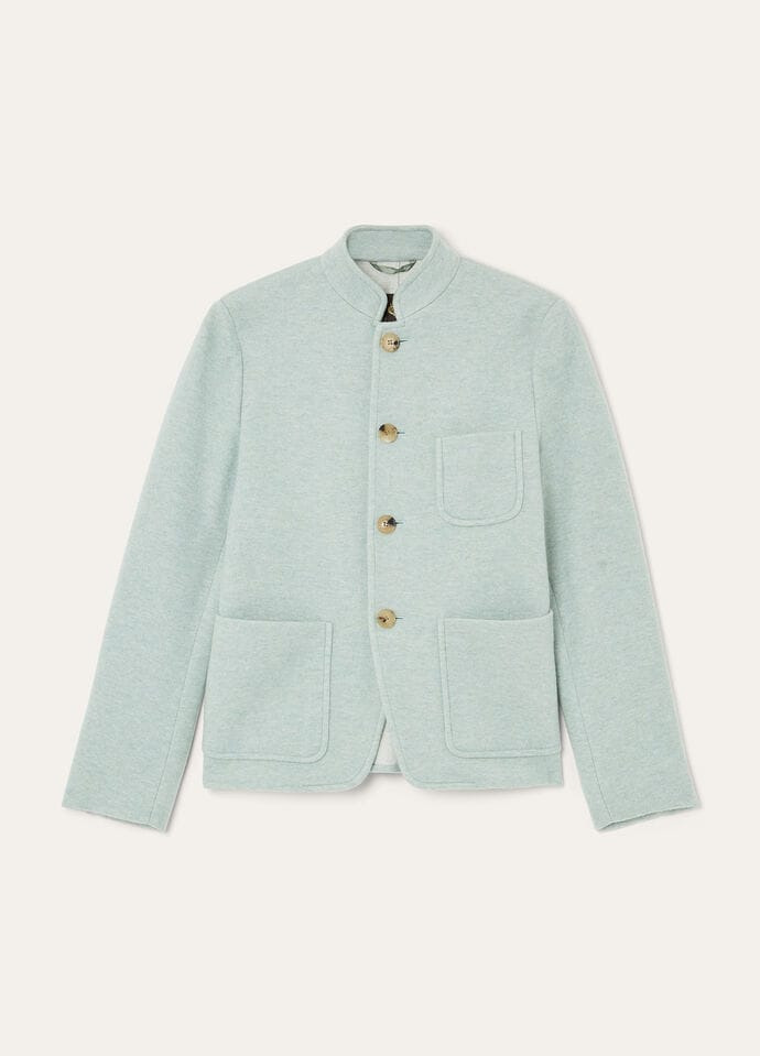 A symphony of nature unfolds with this contemporary interpretation of the Spagna sweater jacket, defined by an upright collar and traditional tailoring. Almost entirely unlined, it is beautifully crafted from double cashmere Jersey Novalis, our iconic lightweight yet warm, naturally stretchy fabric. Embodying Loro Piana's commitment to unparalleled textile quality, it gently embraces the wearer. With its much more fitted line, it transcends the seasons with timeless elegance. Product details Upright band collar, a detail borrowed from the Spagna jacket Horn buttons and suede top buttonhole Large patch pockets Composition: 100% Cashmere Model wears an IT 40 Model measures: height 5′ 10″/ 179cm, bust 30.3″/ 77cm, waist 23.2″/ 59cm, hips 35.0″/ 89cm, shoes 15.4″/ 39cm. Made in Italy Product code: FAN9004