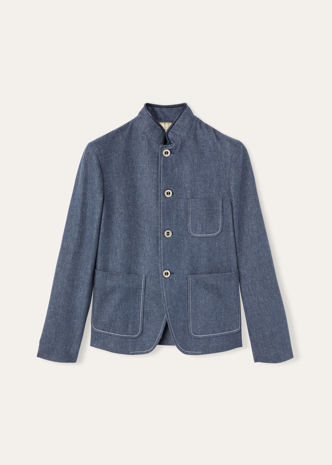 The Spagna jacket revels in the timeless appeal of denim, an ode to the time-honored traditions of craftsmanship and the rugged organic texture that has delighted generations. The iconic Spagna jacket from the men's collection is reimagined in a feminine 'mini' version, its casual spirit translated into a relaxed, comfortable line in exclusive denim. An upright collar gives a contemporary nod to Loro Piana's heritage and epitomizes the brand's refined approach to dressing. Product details Metal buttons with horizontal bar at the center Blue-colored leather border on the collar and on the first buttonhole Contrasting white-colors stitching Inside label in bag with the name of the denim used Patch pockets Ivory stitching Composition: 100% Cotton Detailing: 100% Lambskin Model wears an IT 36 Model measures: height 5′ 10″/ 179cm, bust 31.1″/ 79cm, waist 24.8″/ 63cm, hips 35.0″/ 89cm. Made in Italy Product code: FAO4488