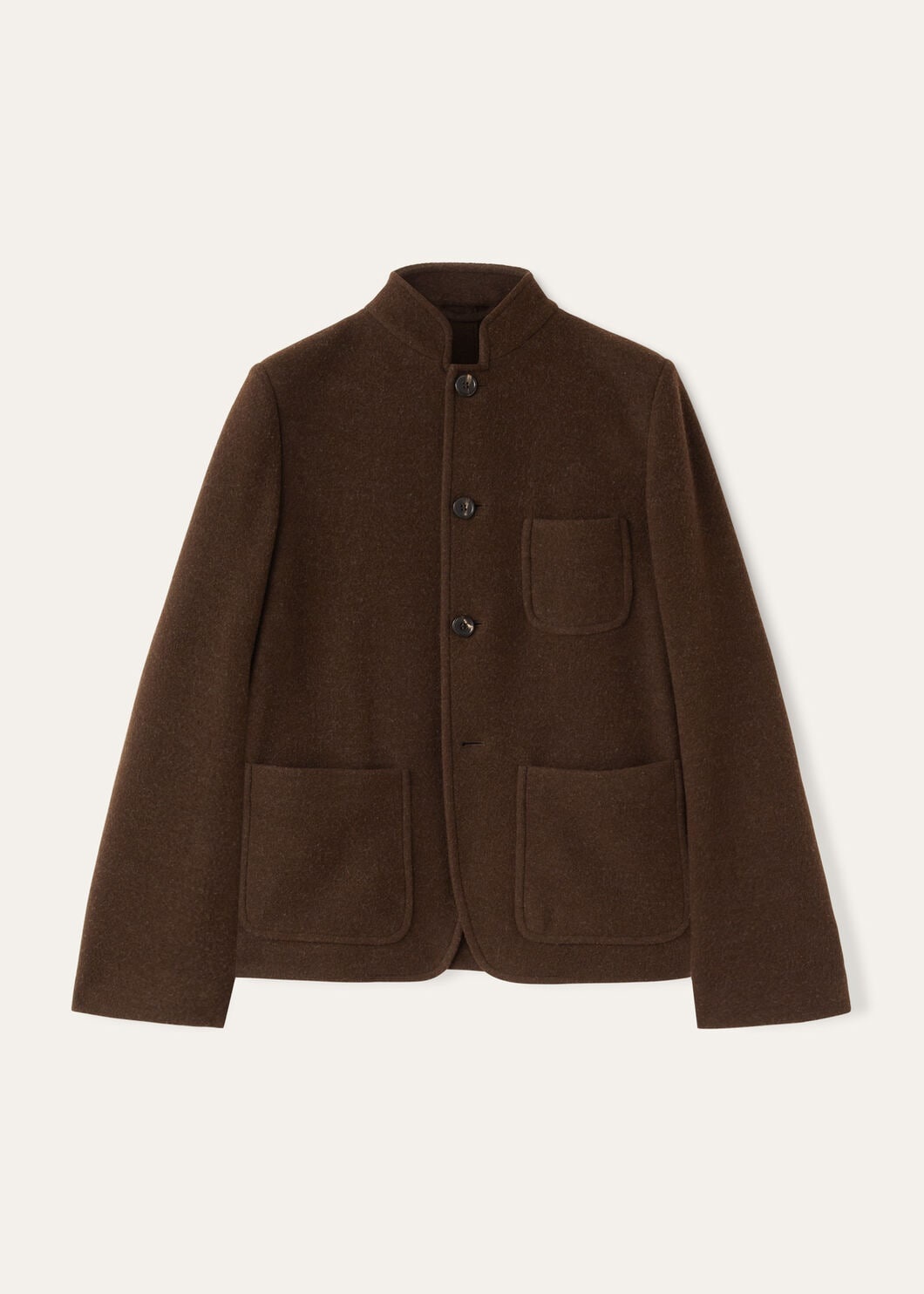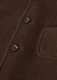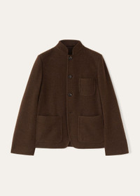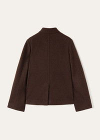 Pecora Nera® fabric – a hidden gem unearthed from the untamed beauty of New Zealand's dark merino sheep – is a testament to Loro Piana’s unwavering pursuit of textile excellence. Revel in the luxurious embrace of the iconic Spagna jacket, now reimagined in a mini version. Featuring a contemporary take on the brand's traditional stand-up collar, it is a piece that embodies Loro Piana's concept of sophisticated dressing. Product details Upright banded collar Horn buttons and suede top buttonhole Large patch pockets Rounded front Storytelling label inside Composition: 100% Wool Lining: 100% Cupro Product code: FAO7417